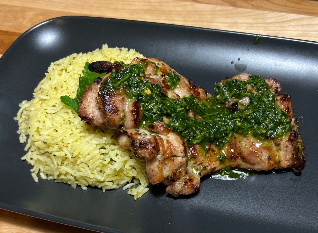 Mix all the ingredients in a bowl. Add the chicken thighs and leave to marinate for 3 hours in the refrigerator. At high temperature, grill each side for one minute, then cook the chicken at low temperature until cooked to keep the meat tasty. When ready to serve, add the chimichurri to taste. A lot is never enough!